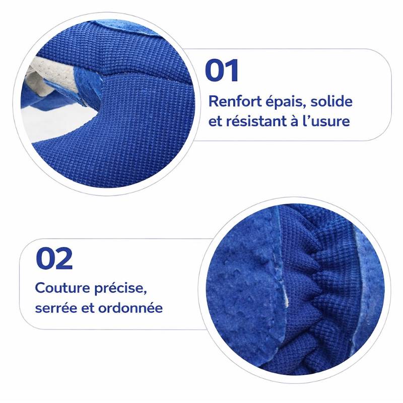 Une zone renforcée entre le pouce et l’index améliore la durabilité.
